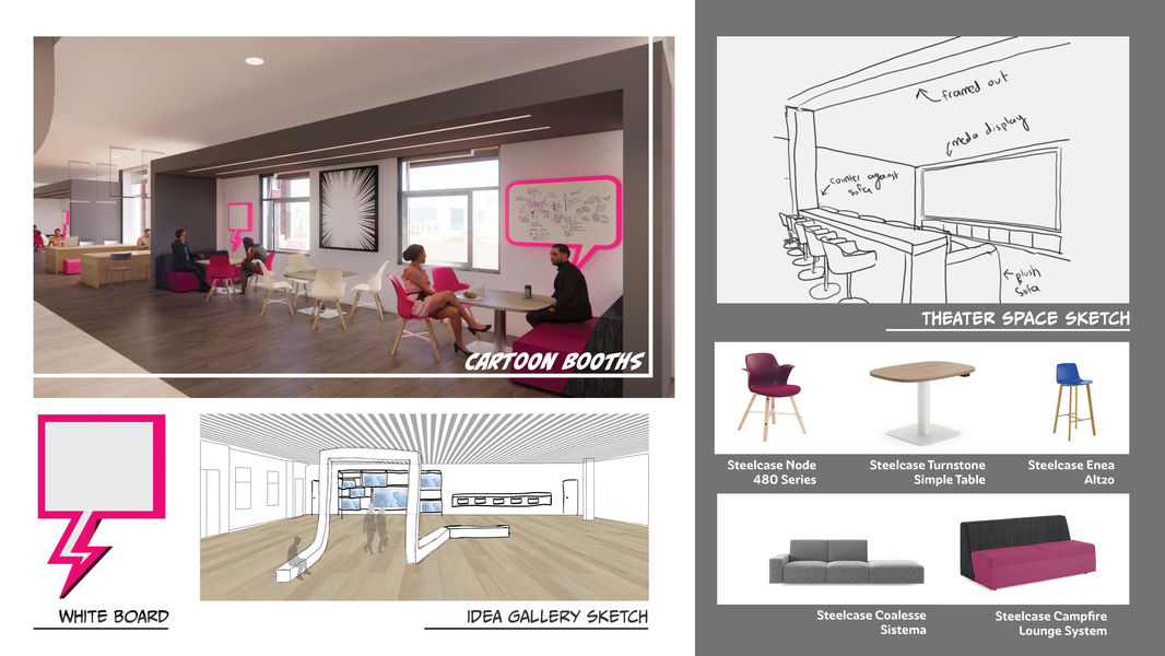 KAPOW at the School of Interactive Media introduces a graphic environment, where occupants become the comic characters, creating their own story. At the School of Interactive Media, college is the next chapter and KAPOW aims to celebrate that big milestone through the process of story-telling.